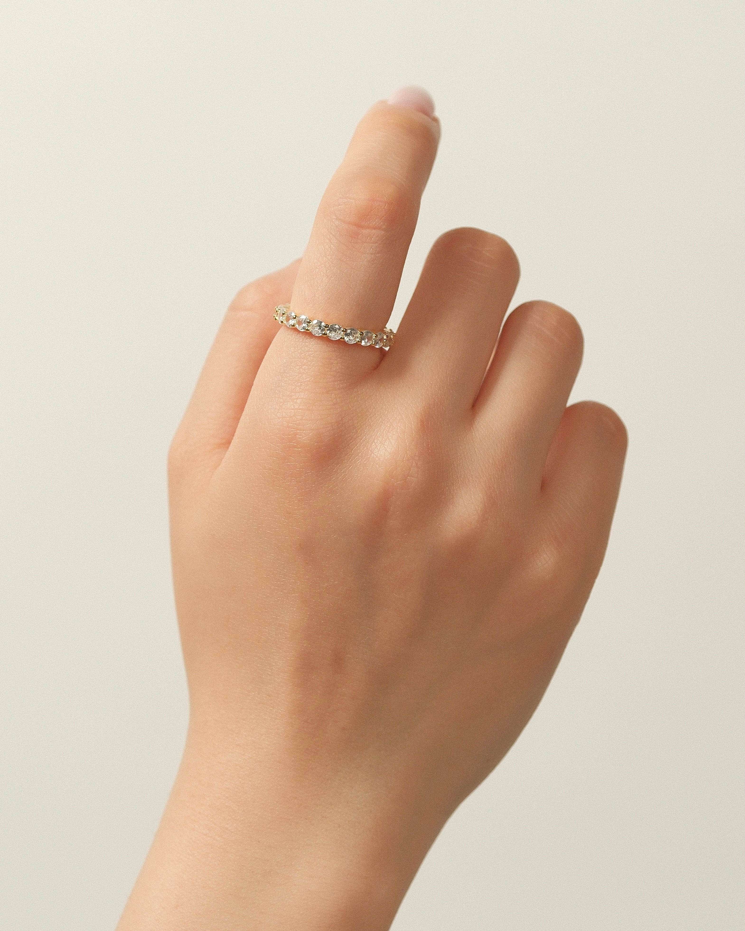 Its dainty design adds elegance and sophistication, making it the perfect choice for everyday wear or as a subtle stacking ring.