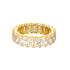 Introducing our Esmeralda Ring—a symbol of eternal elegance. This exquisite ring features a continuous band adorned with meticulously arranged baguette-cut gemstones, exuding a timeless allure that captivates with its sleek lines and understated sophistication. For a glamorous night out, add our Esmeralda hoops as the perfect set!