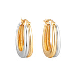 Remy Earrings—where sleek design meets effortless style. Featuring a double-layered drop shape, these two-tone hoops blend gold and silver, creating a refined yet modern look.