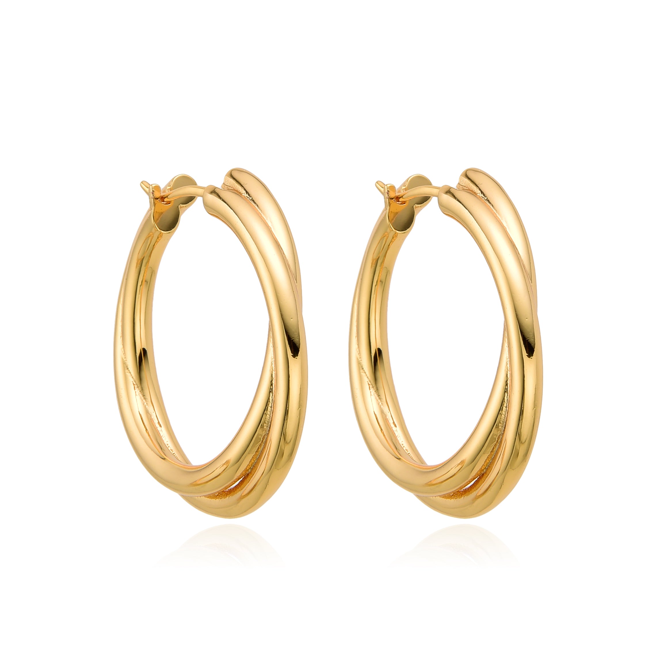 The Serafina Hoops redefine bold elegance. With their unique interwoven design and polished finish, these hoops add a vintage-inspired charm to any ensemble. Effortlessly blend them with casual or formal wear to exude timeless grace and bold sophistication.