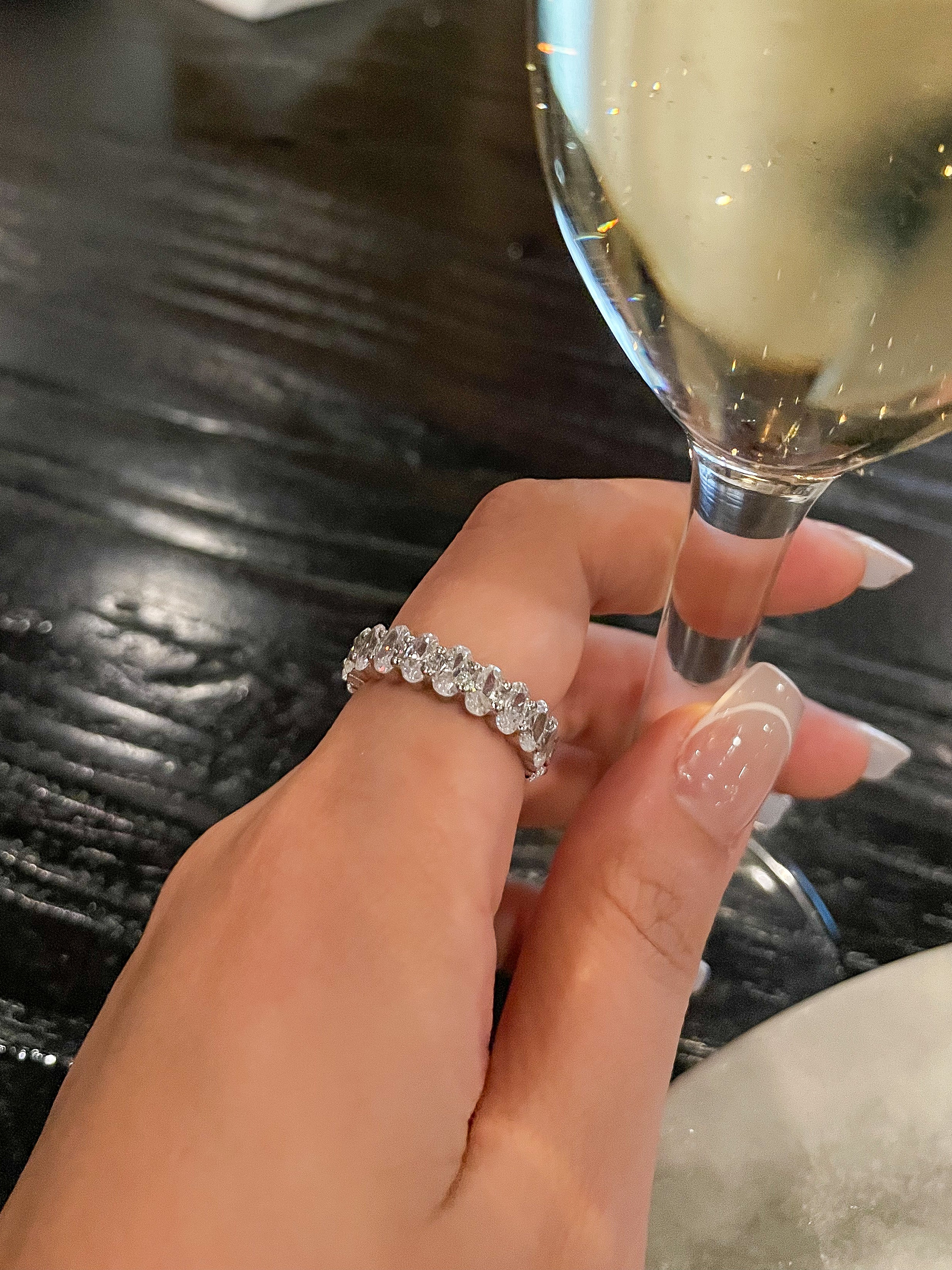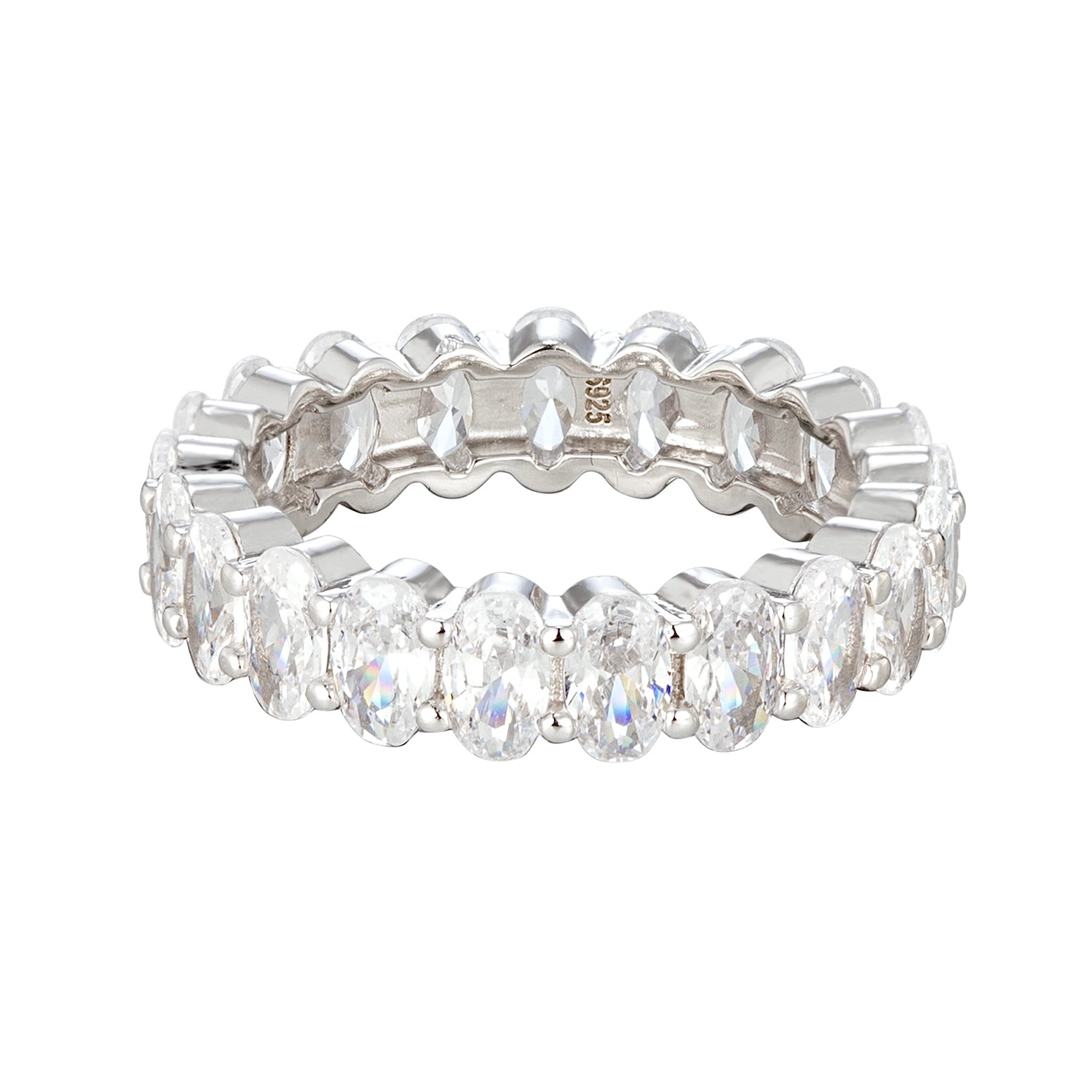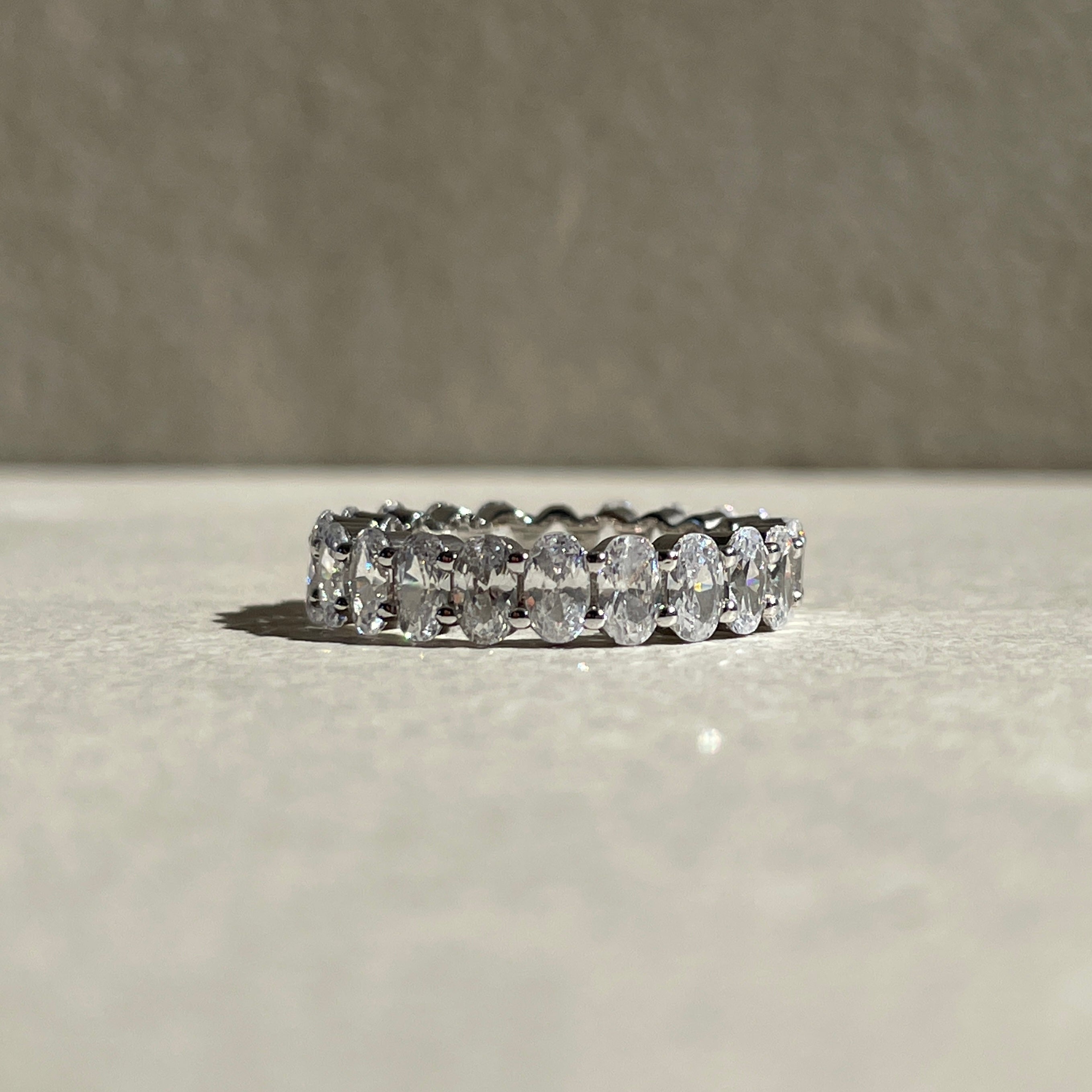 The Jessica eternity band is what every girl needs. With oval-cut gemstones all around the ring, radiating elegance and grace in every facet.